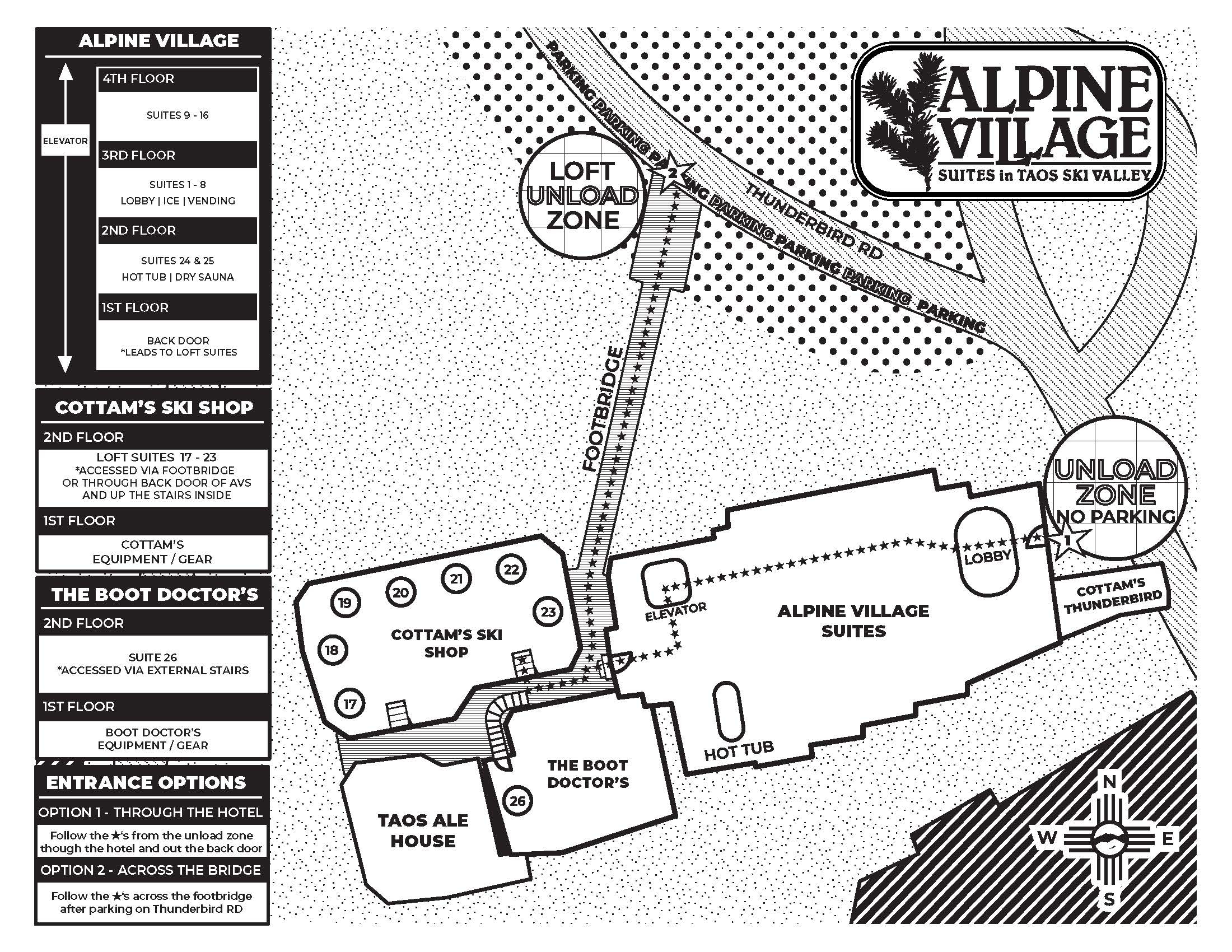 Guests have access to our sister property, Alpine Village Suites, and its various amenities including an outdoor hot tub, sauna and massage services.